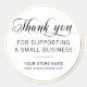 Black White Gold Small Business Thank You Classic Round Sticker