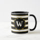 Black White Gold Stripes Botanical Wreath Monogram Mug
