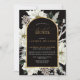 Transform your celebration into an exquisite winter soirée with this Elegant Black and White Gold Winter Evergreen Bridal Shower Invitation on a dramatic black background. The lush white poinsettias, frosted evergreens, and rustic pinecones stand out vividly against the deep black backdrop, creating a stunning interplay of modern elegance and timeless charm. The gold arched frame adds a luminous, sophisticated touch, perfect for setting the tone of a luxurious and memorable event.