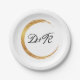 Black White Golden Ring Monogram Initials Name Paper Plate