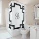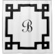 A black Greek key border frames a monogram in black script font on a white background. Easily customise it with your own initial. Also makes a great personalised housewarming gift!