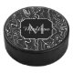 Black white grey damascus abstract swirls Monogram Hockey Puck