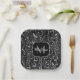 Black white grey damascus abstract swirls Monogram Paper Plate