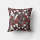 Modern outdoor pillow features a stylish organic floral design of white, red and grey flowers on a black background.