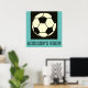 Black White Grey Teal Blue Soccer Ball Custom Name Poster