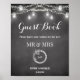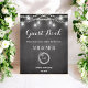 Black White Guest Book Wedding Sign Banner Poster for wedding with String Lights and Mason Jar on a rustic blackboard/chalkboard background. Use personalise this template option to change the text.