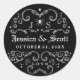 Black & White Halloween Gothic Scroll Wedding Names & Date Round Sticker