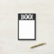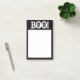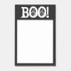LARGE 4X6, BLACK AND WHITE, HALLOWEEN NOTES, TEXT "BOO!". BLACK AROUD WHITE CENTER.