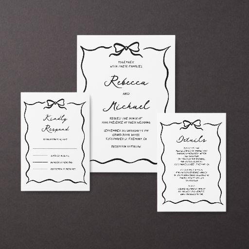 Black & White Hand Drawn Bow Wedding Details Enclosure Card