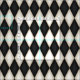 A black and white diamond check pattern with luminous shading and a vintage richness. This medium scale version has diamond that are 3 inches wide and ideal for projects such as skirts, dresses, and bedding, curtains, etc.