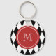 Black White Harlequin Pattern, Red Monogram Key Ring
