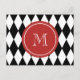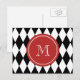 Black White Harlequin Pattern, Red Monogram Postcard