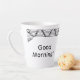 Whether you're enjoying a morning coffee or relaxing with an afternoon latte, this personalised latte mug with a Black and White Heat Wave Border will make a statement. Its sleek design, attention to detail, and personalised touch combine to create a mug that is both practical and aesthetically pleasing. Good Morning!