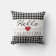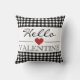 Black & White Hello Valentine Plaid Gingham Cushion