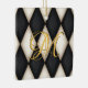 Black & White Herlequin Faux Antique Monogrammed Ceramic Ornament