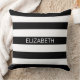 Black White Horizontal Preppy Stripe Name Monogram Cushion