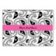 Black and white paisley with hot pink. The design features a black and white paisley pattern and flowers and a hot pink band in the middle where you can add your text.