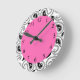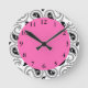 Black, White, Hot Pink Paisley Pattern Round Clock