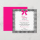 Black & White Houndstooth Pink Bow Lace Sweet 16 Invitation