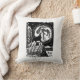 Black & White Howling Husky at Night Linocut Cushion