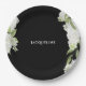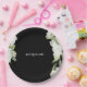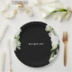 Black with White Hydrangeas Bridal Shower paper plate. White typography. Modern Design and font. Elegant. Black and white.