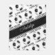 This cool soccer themed fleece blanket for girls features the realistic image of a soccer ball patterned at an angle with the sporty font text phrase "I LOVE SOCCER" in black that stretches between the angled rows of soccer balls - personalise her name in a sophisticated handwritten font on a similarly angled chunky black colour strip - background is customisable white - by katz_d_zynes