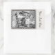 This rectangle sticker is white with a black and white illustration of little red riding hood talking to the wolf in the forest in an ornate black frame. Customise your text with the template.