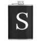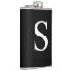 Black & White Initial Letter Monogrammed Plain Hip Flask