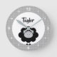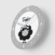 Black White Lamb Kawaii Kid Nursery Script Name Round Clock