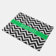 Black and White Large Chevron Zig Zag Pattern, Emerald Green Ribbon Name Monogram Label