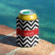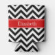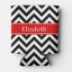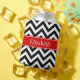 Black and White Large Chevron Zig Zag Pattern, Red Ribbon Name Monogram Label