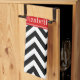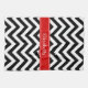 Black and White Large Chevron Zig Zag Pattern, Red Ribbon Name Monogram Label