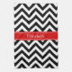 Black White LG Chevron Red Name Monogram Tea Towel
