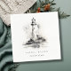 Black & White Lighthouse Nautical Sketch Wedding Napkin