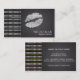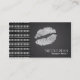 Black & White Lines Modern Faux Silver Lips Beauty Business Card