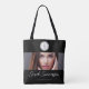 Make a lasting first impression with this elegant black and white tote bag, featuring a customizable photo on the front with your name in a modern script font. The clean, minimal layout highlights your personal brand while keeping the focus on your professional image. Add your social media details for a sleek, organized presentation. Perfect for creatives, beauty professionals, entrepreneurs, and anyone who wants a timeless design that stands out with style and confidence.