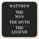 A classic black background.   Text: The Man, The Myth, The Legend. Personalise and add his name.