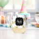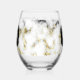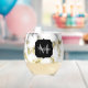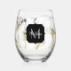 Black white marble gold sparkle Custom Monogram Stemless Wine Glass