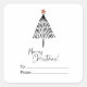 Black White Merry Christmas Tree Hand Drawn Square Sticker