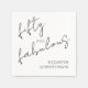“Fifty and fabulous.” Own it and usher in 50 with style! Using this sophisticated minimal 50th birthday personalised paper napkin will help make her birthday a party to remember. Dramatic black handwriting script calligraphy and simple sans serif typography overlay a clean, white background. Personalise with her name. Your choice of 3 sizes: cocktail, luncheon, & dinner. Order a different size for each course of your celebratory meal! Matching and coordinating invitations, envelopes, labels, paper plates and other party supplies are also available.