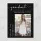 Yay! She finally graduated from school either from high school, college/university, tech school, or a graduate program so now it's time to inform family and friends that she did it! Celebrate one of her life's precious moments and send out this graduation announcement postcard. This postcard features elegant modern minimalist graduation announcement featuring a beautiful calligraphy script on a black background and the graduate's photo. Just customise and replace the text and photo in the personalisation box.