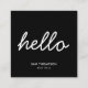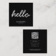 A black and white business card with clean and simple accents. Introduce yourself with this "hello" business card. A simple and professional way to introduce your business. Social media handle and QR code included in the design of this business card for you to use. Personalise your details to create your own unique business card.