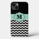 Show off your personal style in a fun way with this black and white chevron with mint green accent monogram phone case.