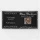 Features business name, photo/logo and website on the right and an area for a list of products you have to offer on the left in white modern text all on a black background. Perfect for photography booth displays, trade shows and farmers markets to showcase who you are, what your brand is and products you have to offer potential customers/clients.