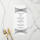 Simple and elegant Modern Deco Wedding Menu Card with a striped criss-cross hatched art deco design in black and white. This classic menu card can be easily customised with your wedding details. For more customisation options, click on the Customise It button.