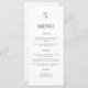 Enhance your wedding table with this black & white modern elegant monogram menu. Featuring a sleek and timeless design, it beautifully complements any sophisticated wedding theme. Personalise with your names, initials, and menu details for an elegant touch.