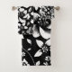 Black White Modern Floral Leaves Blowing Bath Towel Set