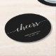 Black & White Modern Lettering Cheers Party Round Paper Coaster
