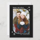 Theme Parties' modern minimalist holiday photo card design features clean black backdrop for your favourite holiday photo set in a geometric rectangle shape with two rounded corners. The reverse side is an iconic plaid pattern / buffalo check in matching black and white. Change "Happy Holidays" to your favourite holiday greeting. #Christmas #Holidays #ChristmasCards