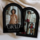 Introducing our black and white arch photo graduation announcement—a sleek, modern keepsake designed with minimalist elegance. The front features an arch-shaped photo with a thin border and the word "grad" partially overlaying the photo. Personalise the template by adding your graduation year, name, and school to create your announcement with ease. On the back, upload 4 more of your favourite photos. © Kimbellished, LLC